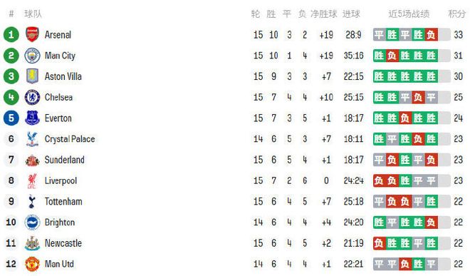北京時間12月7日,英超第15輪先賽7場。領頭羊阿森納翻車輸球,而切爾西和利物浦延續(xù)低迷不勝,曼城成為最大贏家,豪取3連勝后距榜首分差縮小至2分。