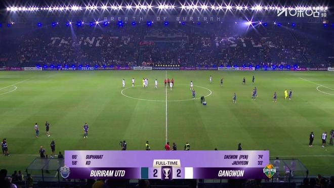 武里南聯(lián)則在主場迎戰(zhàn)江原FC,上半場江原FC憑借著莫在賢的進(jìn)球半場1-0領(lǐng)先,下半場武里南聯(lián)憑借高明錫、素帕那的進(jìn)球2-1反超比分,金大元第74分鐘點(diǎn)球扳平比分,最終雙方2-2握手言和。